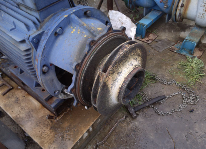 1)在水泵前投入藥物或者水質等原因,導致泵殼內嚴重腐蝕或者污垢過多。泵殼內污垢過多會導致泵殼壁厚增加2毫米左右,會使泵內壁形成垢瘤,導致泵體容積縮小、抽水量減少、流道粗糙、增加水頭損失。水力效率和容積效率都會降低。
